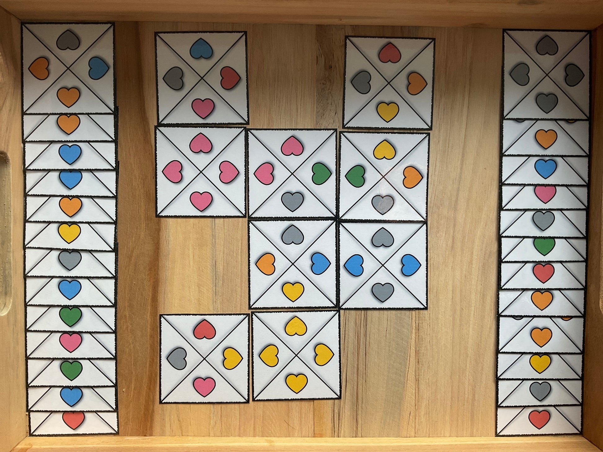 Des coeurs aux couleurs vives s'associent sur chaque côté de ce domino en forme de carré, pour un look amusant et original. Ajoutez de la couleur à votre jeu avec ce carré en coeur!