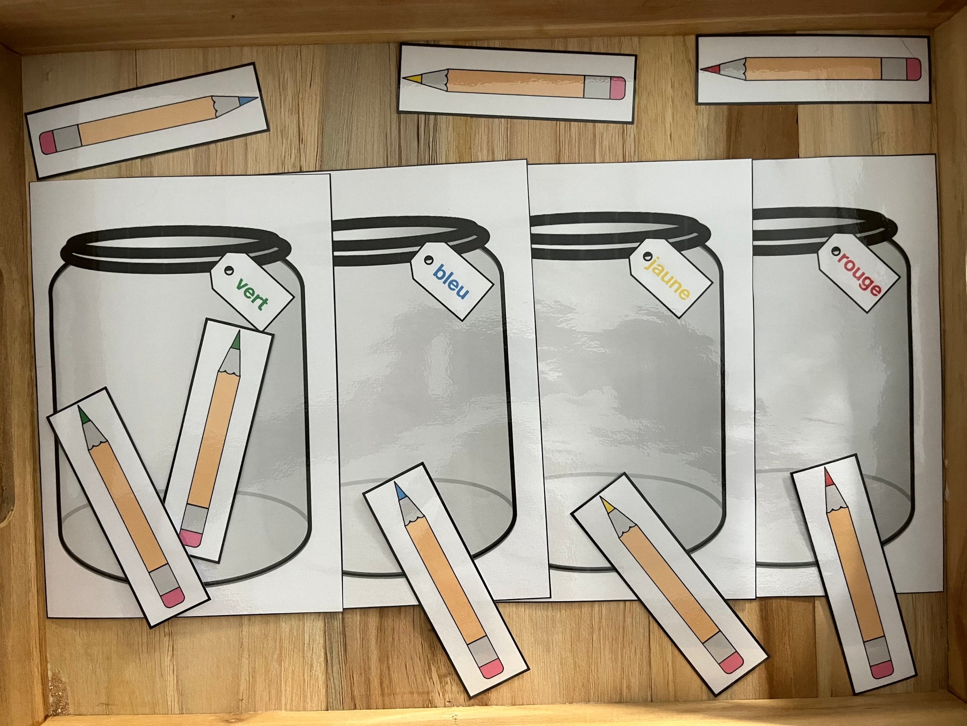 Vous devez retrouver le crayon de couleur correspondant au bon pot de couleur !