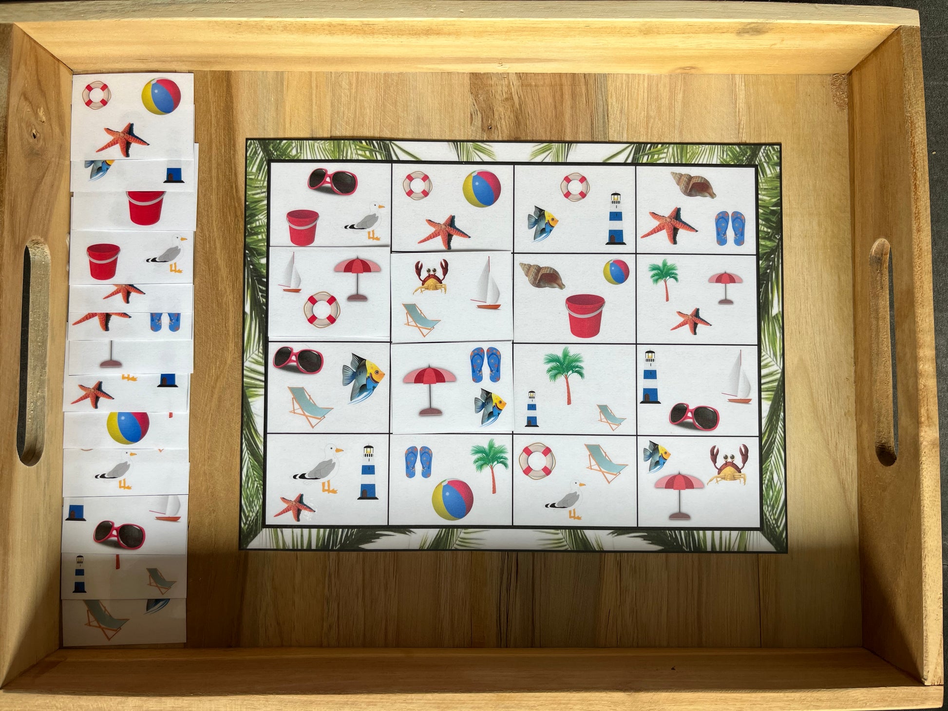 Associer les étiquettes de 3 objets sur le thème de l'été à la case du quadrillage.