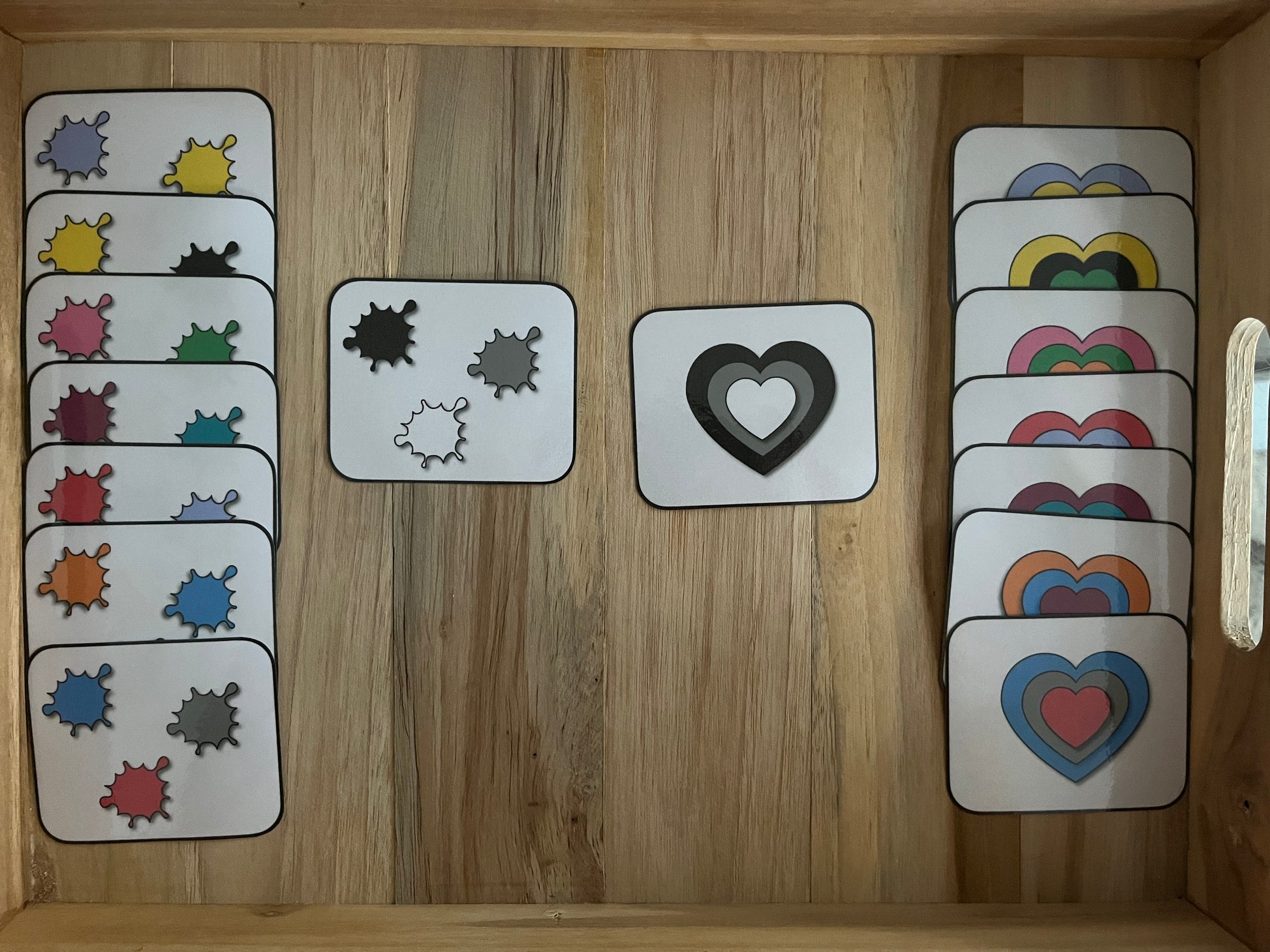 Associer les cartes coeur avec les cartes de peinture selon leurs couleurs.