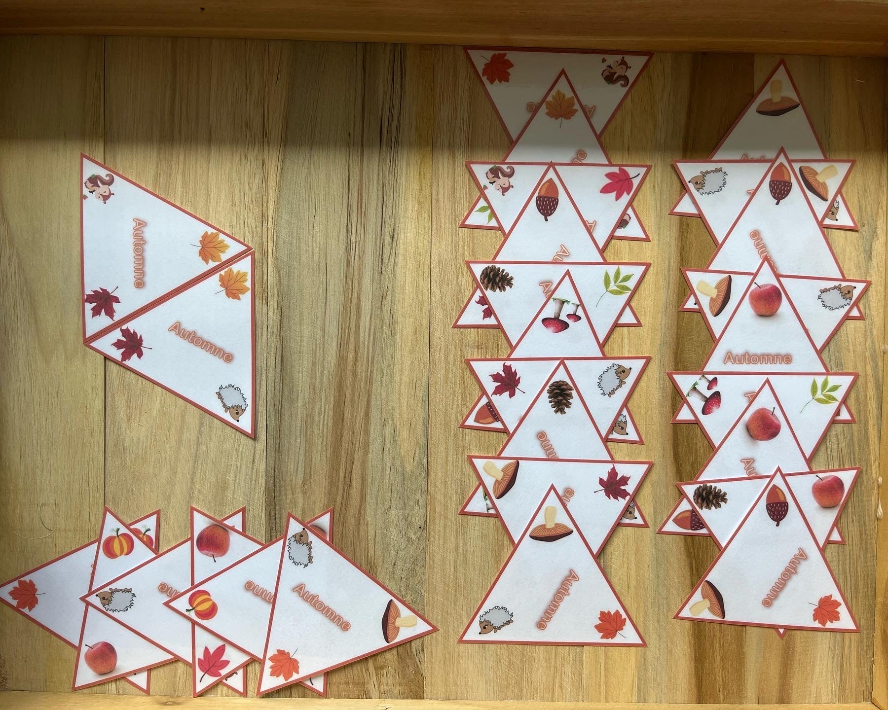 Ce jeu de dominos triangle spécial automne vous offre une expérience ludique et originale.Vous pourrez vous amuser en famille ou entre amis tout en célébrant la saison. Idéal pour développer la réflexion et la stratégie, ce jeu est un incontournable.