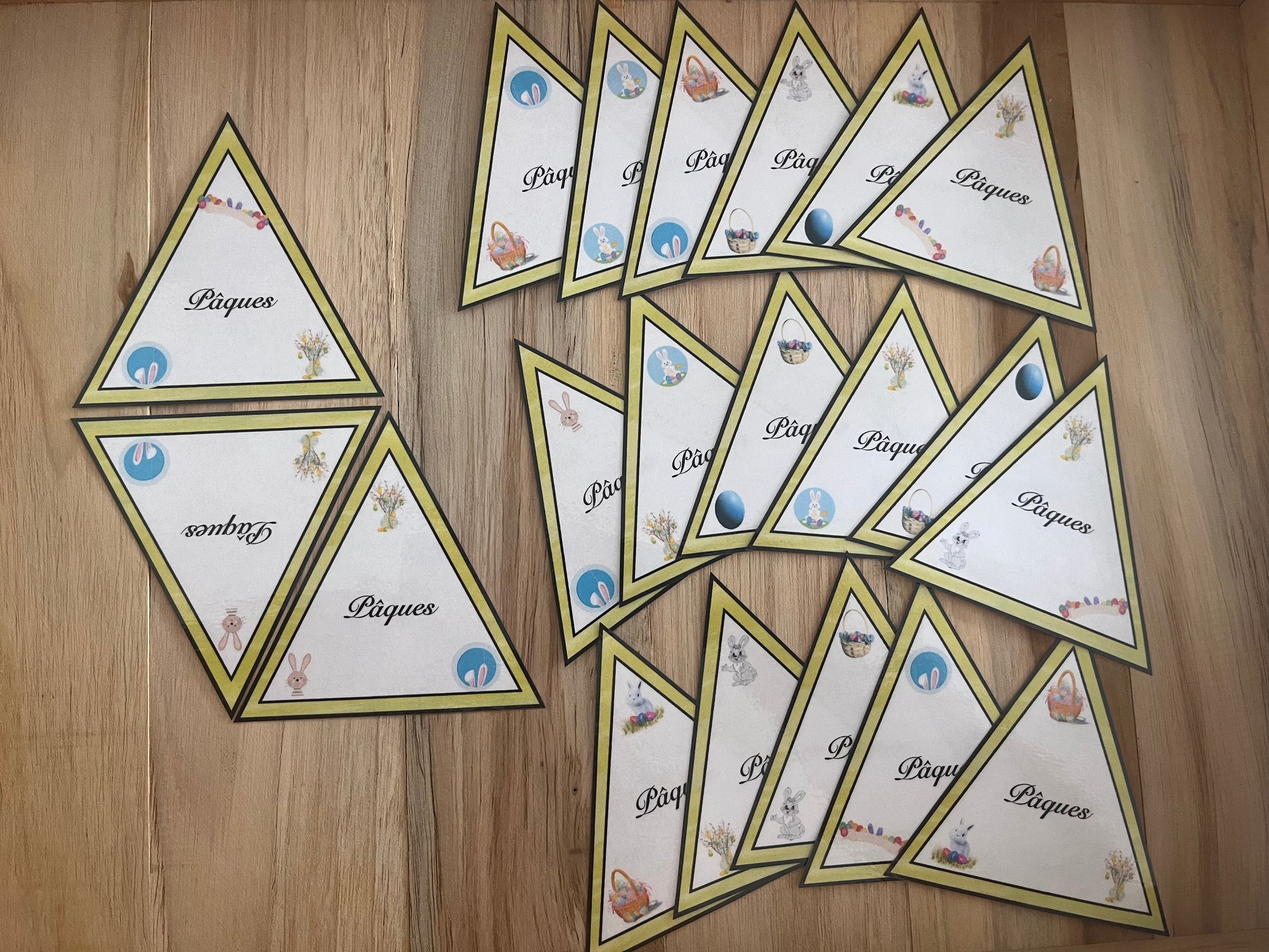 Chaque pièce en forme de triangle est ornée d'une image amusante de pâques, ce qui en fait le choix parfait pour une fête de pâques en famille ou entre amis. Essayez-le aujourd'hui!